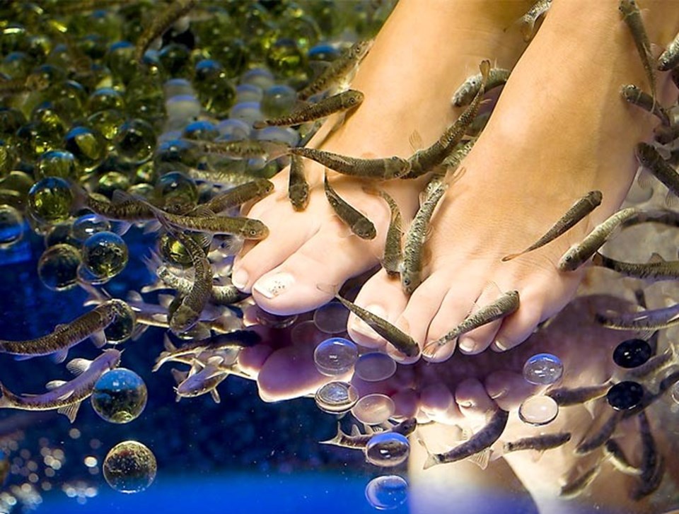 Dişleri olmayan Kangal balıkları, müşterilerin ayaklarını emerek ölü hücrelerin vücuttan atılmasını sağlıyor. Bu yöntem sedef ve egzama gibi hastalıkların tedavisinde faydalı oluyor.