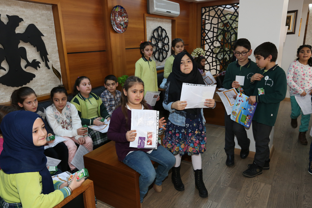 İnönü ilköğretim okulu öğrencileri de Belediye’ye gelerek Belediye Başkanı Sami Aydın'a teşekkür etti.