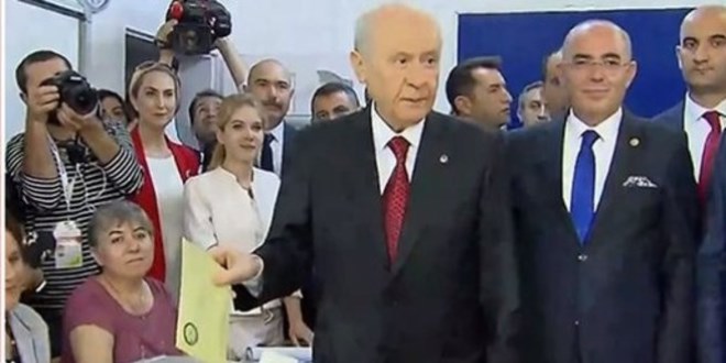 Bahçeli, "Suruç'ta, sandıklara belirsiz kişilerce zarflar içinde oy atılma görüntüleri ortaya çıktı, ne diyorsunuz?" sorusuna, "Bilgi sahibi değilim. Ancak sayın İçişleri Bakanı ve yetkili kuruluşların sorumluları gerekli her türlü tedbiri almıştır. Hiçbir engelleyici faktör rol oynayamayacaktır. Sonuç itibarıyla sağlıklı bir seçim ortaya çıkacaktır" yanıtı verdi.