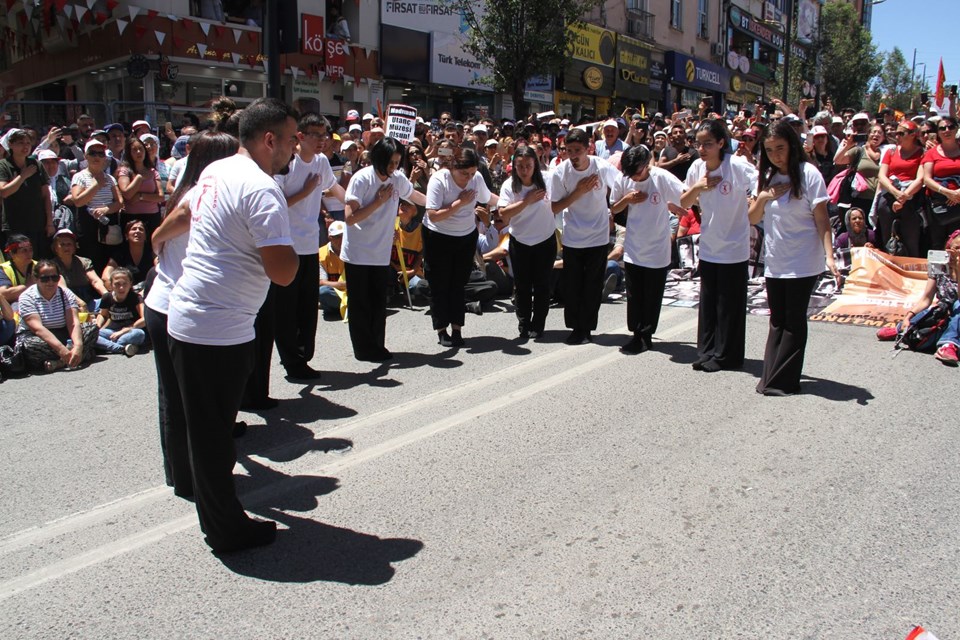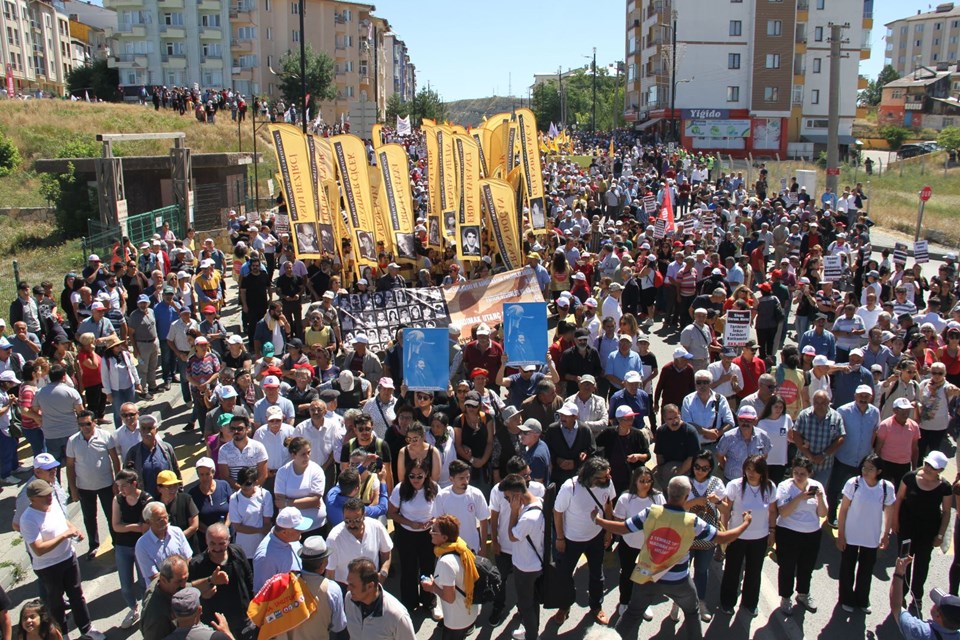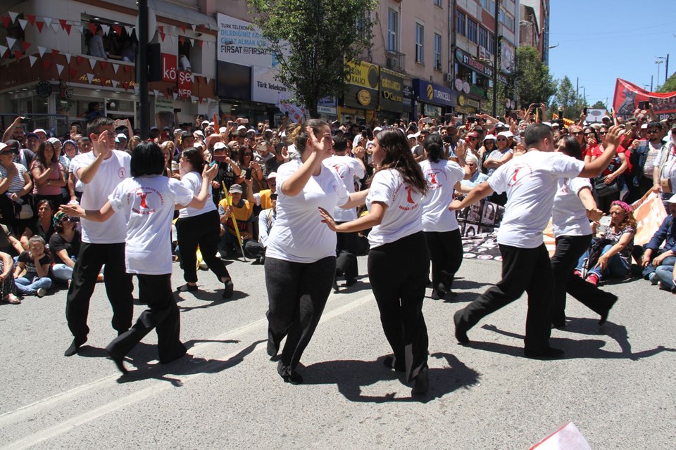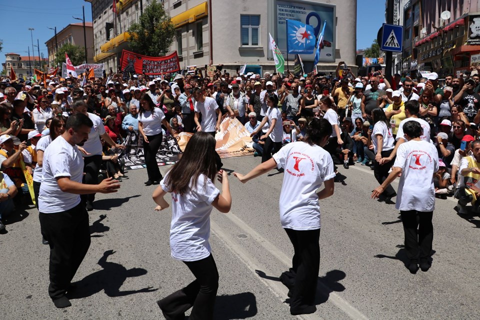 Yaklaşık 10 bin kişilik grup, buradan sloganlar atarak, Mevlana Caddesi güzergahından eski Madımak Oteli'nin bulunduğu sokağın girişine kadar yürüdü.