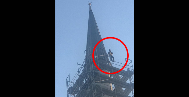 İşsiz ve aç olduğunu söyleyen bir vatandaş Taksim'deki cami inşaatında intihar girişiminde bulunuyor