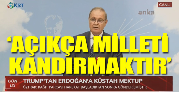 CHP Sözcüsü ve Genel Başkan Yardımcısı Faik Öztrak gündeme dair açıklamalarda bulundu. Öztrak, Trump'ın Erdoğan'a gönderdiği mektuba sert tepki gösterdi.
