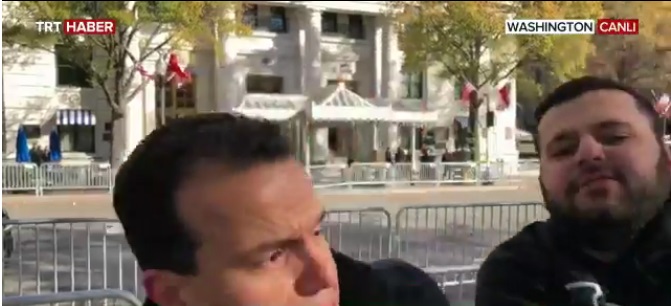 Cumhurbaşkanı Recep Tayyip Erdoğan, ABD Başkanı Donald Trump ile gerçekleştireceği zirve için Washington’da bulunuyor. Görüşmeyi yerinden takip etmek isteyen TRT Haber muhabiri ve kameramanına kimliği belirsiz bir kişi tarafından saldırı gerçekleştirildi.