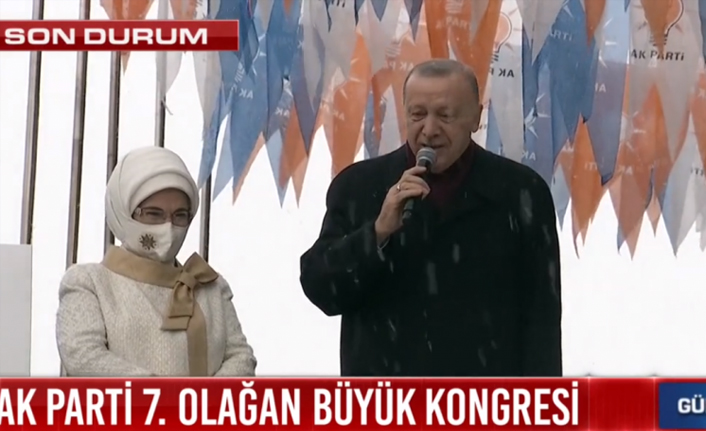 "Türkiye için güven ve istikrar" sloganıyla düzenlenen AKP'nin 7'nci Olağan Kongresi pandemi koşullarına rağmen başlarken AKP Genel Başkanı ve Cumhurbaşkanı Erdoğan dışarıda bekleyen partililere seslendi.