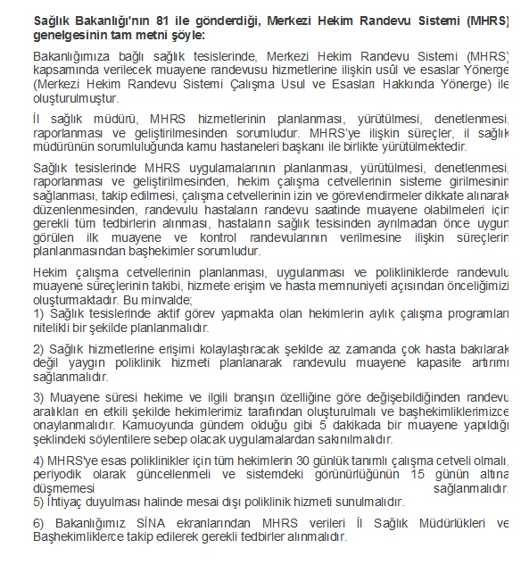 BAKANLIKTAN 81 ile 'randevu' genelgesi
