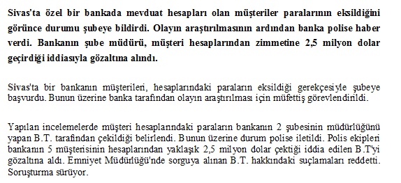 Sivasta bir bankanin muduru 2,5 milyon dolari zimmetine gecirdigi iddia ediliyor