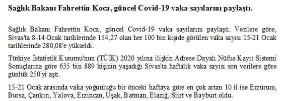 Sivasta gunluk vaka sayisinda buyuk artis