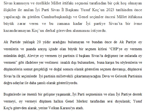 O Partinin Sivas İl Başkanı sonunda değişti...