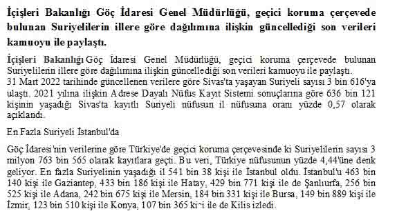 Sivasta yasayan Suriyeli sayisi aciklandi