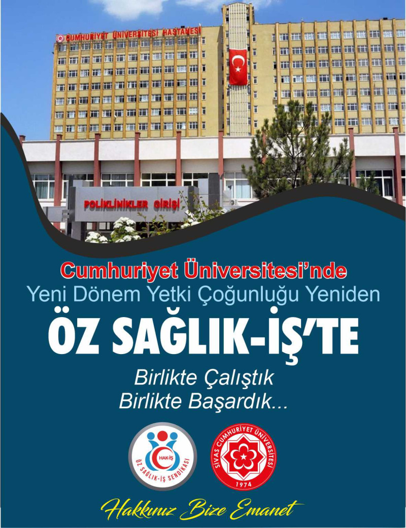 Hak-İş Konfederasyonu’na bağlı olan Öz Sağlık-İş Sendikası, üniversiteden sorumlu Şube Başkan Yardımcısı Hikmet Erdem başkanlığında, üst üste üçüncü dönemde de yetkiyi alarak sahada çalışan personelin güvenini bir kez daha perçinlemiştir.