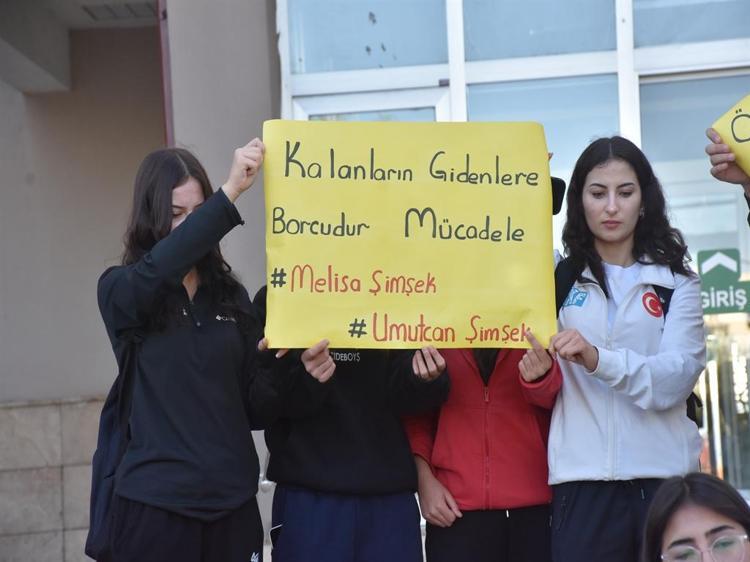 Duruşma sonunda Melisa ve Umutcan Şimşek'in kuzenleri ve arkadaşları, adliye önünde pankart açtı. Üzerinde çocuklarının fotoğraflarının bulunduğu tişört ile adliyeye gelen ve duruşma sonunda açıklama yapan Ayşegül Şimşek, adalete teşekkür etti. Şimşek, "İstediğimi verdiler. Sağ olsun. Herkes yanımda oldu. Hepsine ayrı ayrı teşekkür ediyorum. Bunun gibi katillerin bu dünyada yaşamaması gerekiyor. Nefes almaları bile hata. En ağır cezadan verdiler, sağ olsunlar. Ama ben bu davanın peşini bırakmayacağım. Arkasındakileri de bulmak için elimden geleni yapacağım. Durmayacağım. Adalet istiyorum. Rahatladım. Çocuklarım geri gelmeyecek ama o pisliğin yüzünden annem şu anda acil durumda hastaneye yattı. Yani çocuklara kafayı taka taka acilleşti. Beyin kanaması geçirdi" dedi.