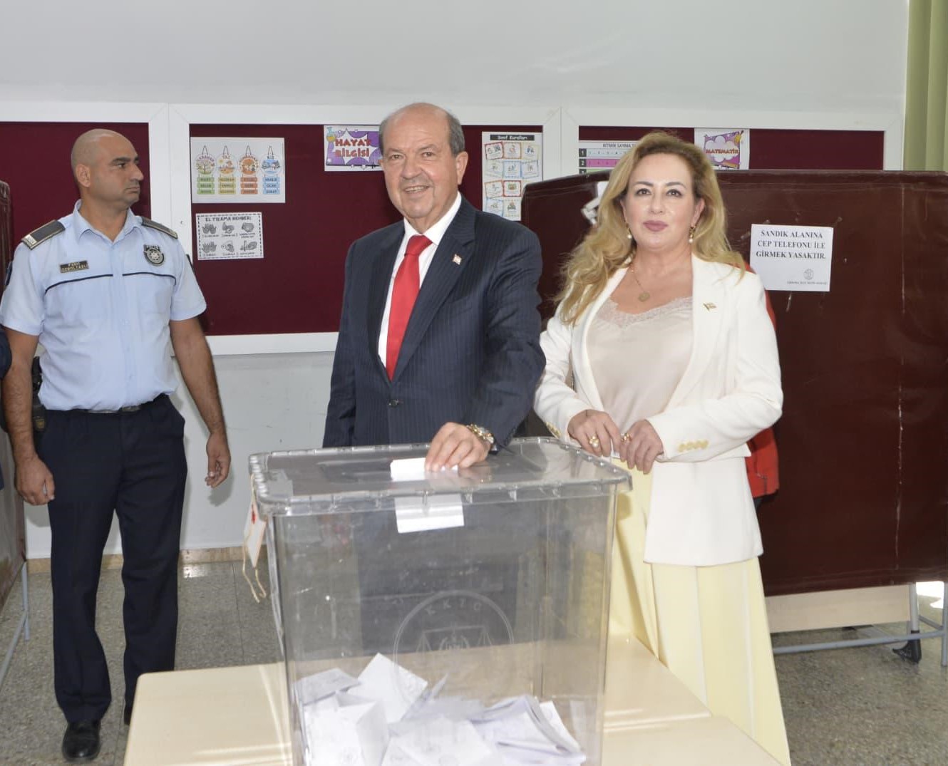 Kuzey Kıbrıs Türk Cumhuriyeti (KKTC) Cumhurbaşkanı ve bağımsız cumhurbaşkanı adayı Ersin Tatar, eşi Sibel Tatar ile oyunu, Lefkoşa Şehit Tuncer İlkokulu’nda 157 numaralı sandıkta kullandı.