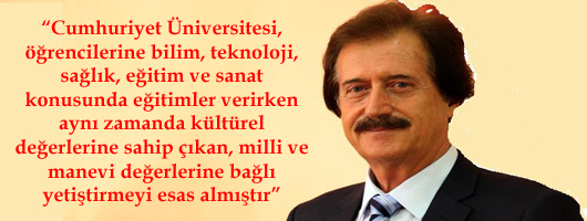 “Cumhuriyet Üniversitesi, öğrencilerine bilim, teknoloji, sağlık, eğitim ve sanat konusunda eğitimler verirken aynı zamanda kültürel değerlerine sahip çıkan, milli ve manevi değerlerine bağlı yetiştirmeyi esas almıştır. Bu duygu ve düşüncelerle Kurban Bayramı’nın, öğrencilerimize, ailelerine, tüm Sivaslı hemşehrilerimize ve ülkemize sağlık, huzur, mutluluk getirmesini temenni eder, iyi bayramlar dilerim.”