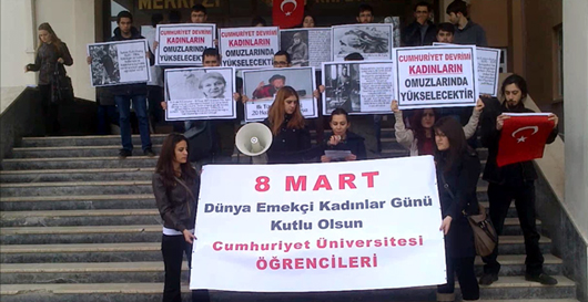 TGB’li gençler basın açıklaması sırasında Türk ve dünya tarihindeki önemli kadınların resimlerini ellerinde taşıdı.Grup adına açıklamayı yapan Günay Yüksel son 10 yılda kadınlar üzerinde dayatmaya çalışılan biat kültürüne boyun eğmeyeceğini vurguladı.