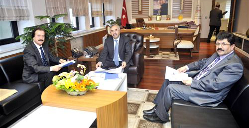 Ziyarette Rektör Prof. Dr. Faruk Kocacık, Müsteşar Habib Soluk'la birlikte CÜ Hafif Raylı Sistem Projesi ile Sivas'ta Hızlı Tren ve Yol Yapım Fabrikası kurma projeleri hakkında görüş alışverişinde bulundu.