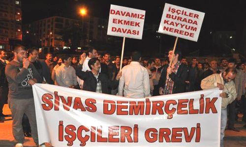 Gece saatlerinde kent merkezindeki Saraybosna Parkı'nda toplanan yaklaşık 400 işçi, çeşitli sloganlar atarak Atatürk Kongre ve Etnografya Müzesi bahçesine yürüdü. Ellerinde 'Sivas Demirçelik İşçileri Grevi' yazılı pankart ve 'Davamız Ekmek Davası', 'İşçiler Burada Kayyum Nerede' yazılı dövizler taşıyan grup bir süre burada oturma eylemi yaptı.