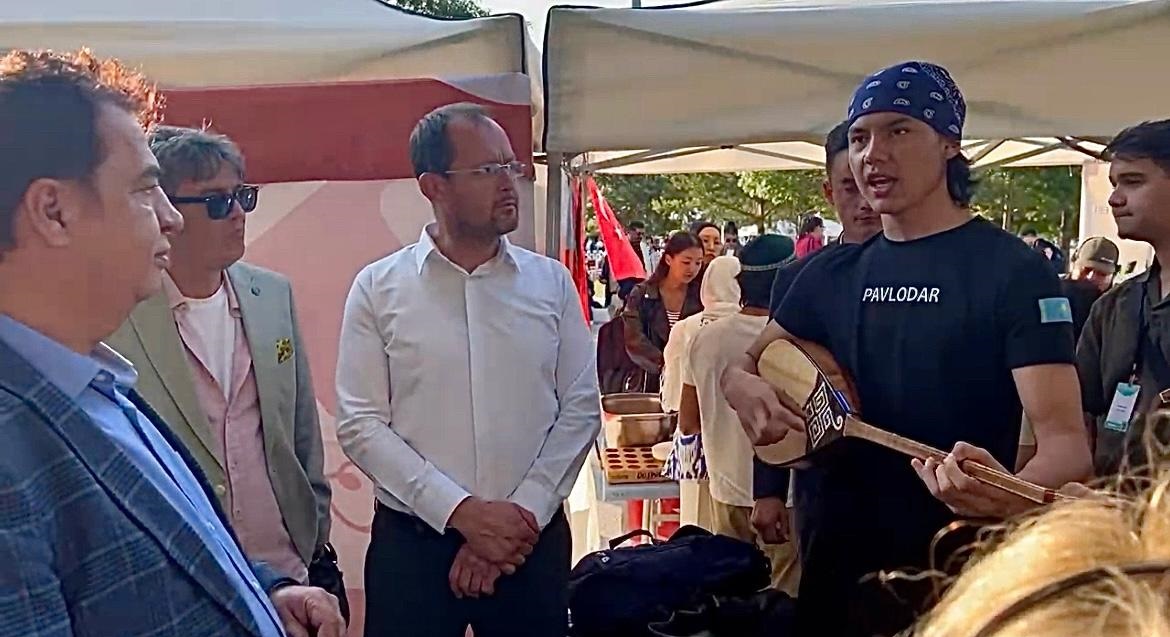 Kazak Türkü öğrenci Rektör Şengönül’e Dombra eserini seslendirdi…